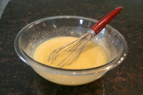 - Meanwhile, whisk the eggs in a large bowl. Then, whisk in granulated sugar, lemon zest and lemon juice.