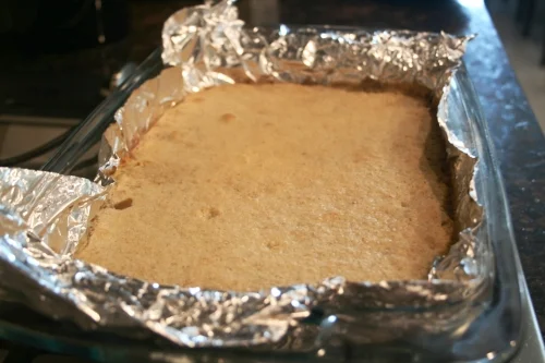 - Preheat oven to 350 degrees. Line bottom and sides of a 13 x 9 inch pan with aluminum foil or parchment paper. Lightly grease foil.