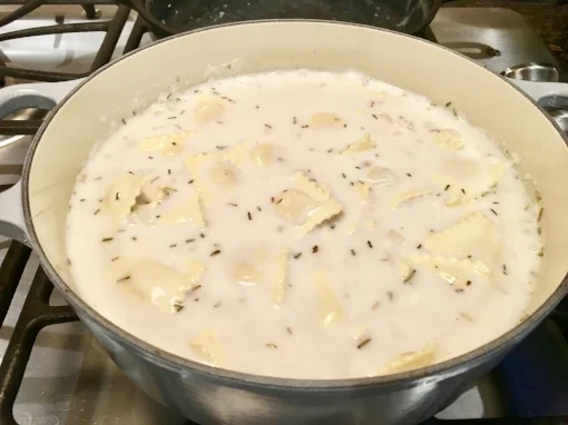 3. Stir in the ravioli and cook, stirring occasionally, until the ravioli are tender and the sauce thickens, 5 to 7 minutes.